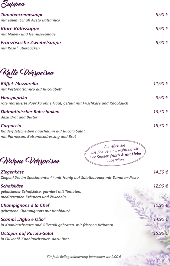 Im Restaurant Lavendel in der Bonnerstraße in Brühl erwartet Sie ein kulinarisches Angebot höchster Qualität. Aus frischen Zutaten zaubern