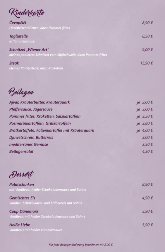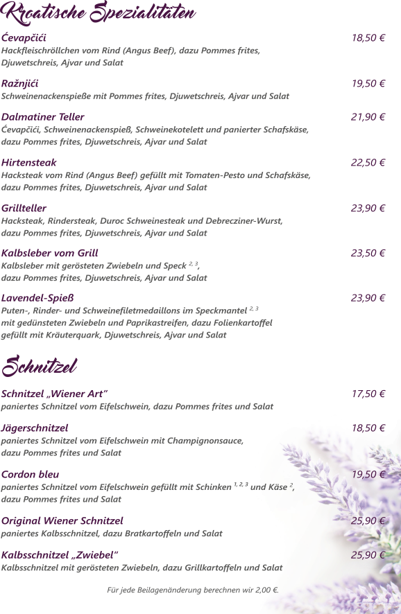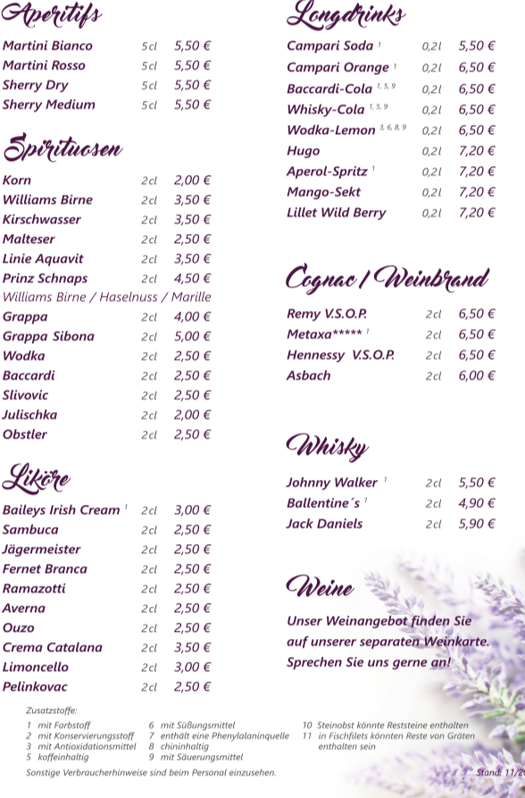 Für unsere Gäste mit einer Lebensmittelunverträglichkeit haben wir eine separate Speisekarte mit den ausgewiesenen Allergenen.